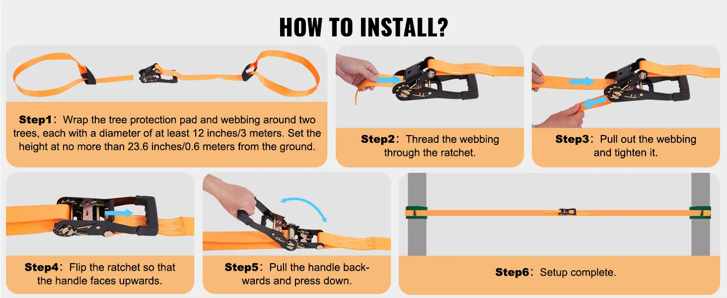 Veiligheid staat voorop bij de VEVOR Slackline Kit. De slackline is gemaakt van hoogwaardige materialen. Hij kan tot 500 lbs dragen. Dit garandeert de veiligheid van alle gebruikers. Ons ratelmechanisme is sterk en betrouwbaar. Boombeschermers voorkomen schade aan de boom. De lijn blijft echter strak en veilig tijdens gebruik. Dat betekent dat iedereen een veilige en plezierige ervaring heeft met deze kit. De VEVOR slacklining kit is gebouwd om lang mee te gaan en bestand te zijn tegen regelmatig gebruik, u kunt vertrouwen op de VEVOR slacklining kit voor een veilige en leuke ervaring.