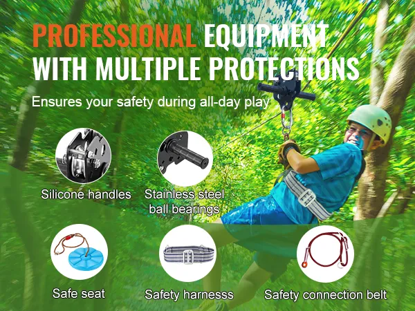 De ziplinesets worden geleverd met een breed scala aan accessoires, waaronder alle outdooruitrusting die nodig is voor veilige buitenactiviteiten. Laat je jeugdige energie vrijelijk stromen.