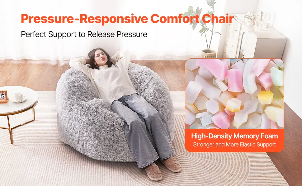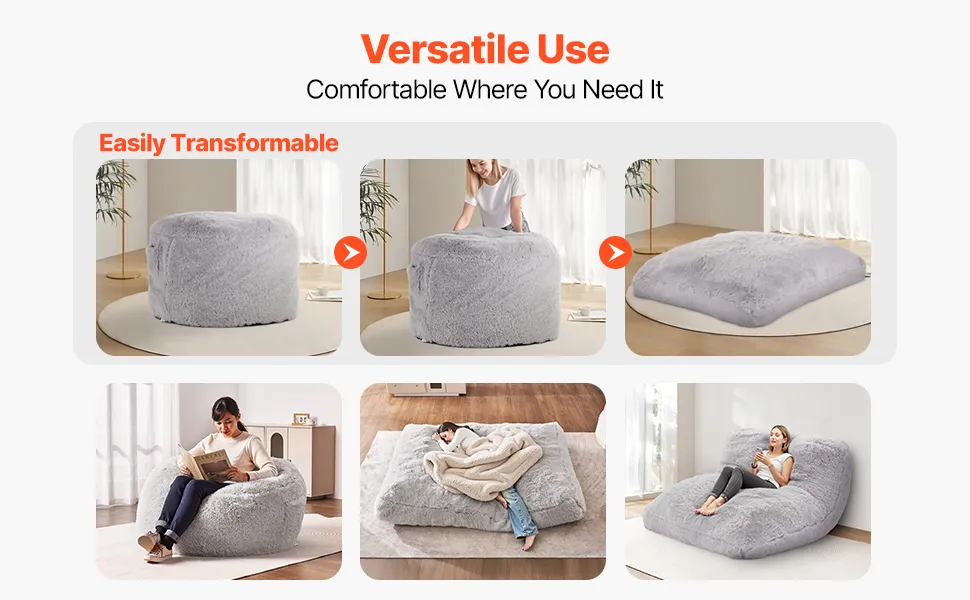 Betrouwbare ondersteuning: Deze zitzak met traagschuim met een hoge dichtheid biedt stevige, veerkrachtige ondersteuning die lang meegaat. Het behoudt zijn vorm, zodat u urenlang comfortabel kunt zitten. Het is ook licht genoeg om gemakkelijk te verplaatsen wanneer dat nodig is
