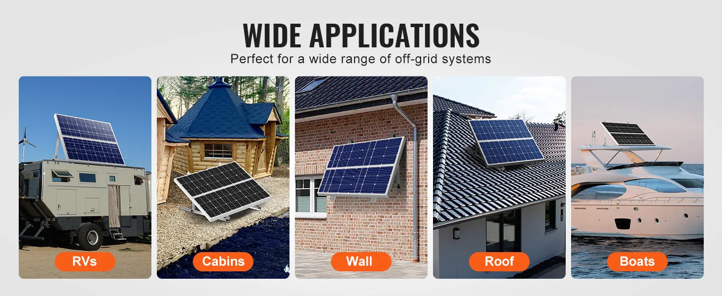 Breed scala aan toepassingen: deze verstelbare montagebeugel voor zonnepanelen biedt een breed scala aan toepassingen en is ideaal voor platte daken, muren, eigendommen, campers, boten, campers en diverse off-grid-systemen. Het biedt stabiele ondersteuning, langdurige prestaties en verhoogt de efficiëntie van uw zonne-energiesysteem.