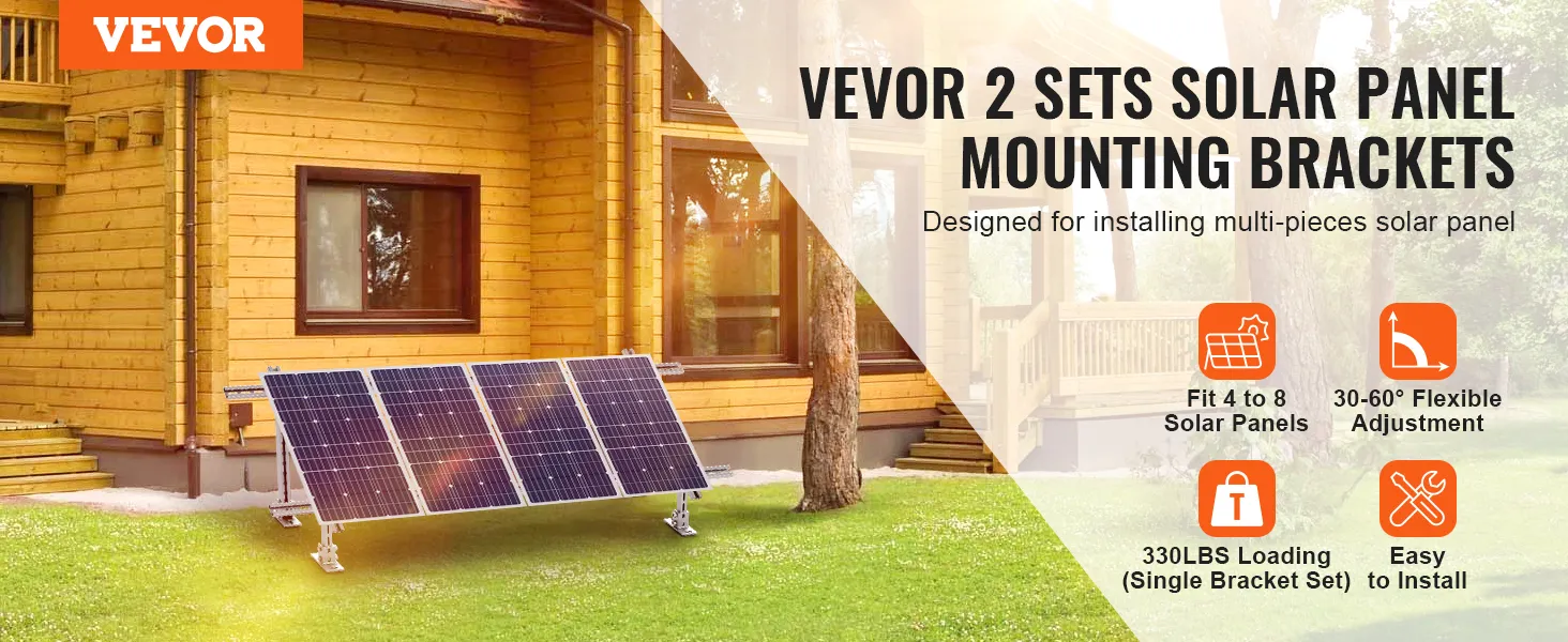 VEVOR Set van 2 zonnepaneelmontagebeugels, 30°-60° verstelbare meerdelige zonnepaneelbevestigingen voor 4-8 zonnepanelen, balkon-energiestation, montagesysteem voor boerderijen, campers, boten, tot 150 kg