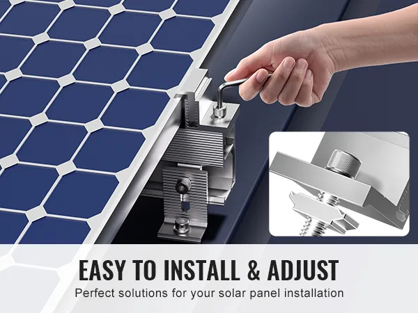 De verstelbare eindklem van 35-50 mm is geschikt voor zonnepanelen van verschillende diktes en de constructie van geanodiseerde aluminiumlegering zorgt voor langdurige stabiliteit, waardoor het de ideale keuze is voor de installatie van zonnepanelen.