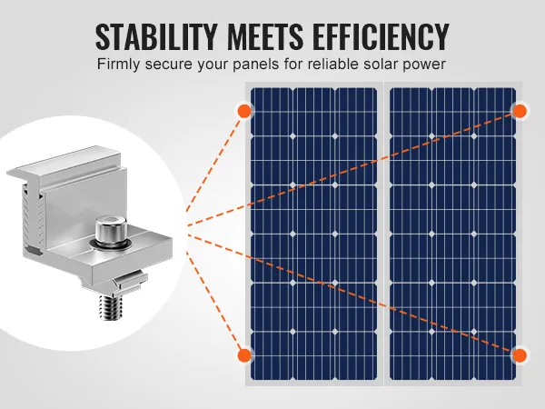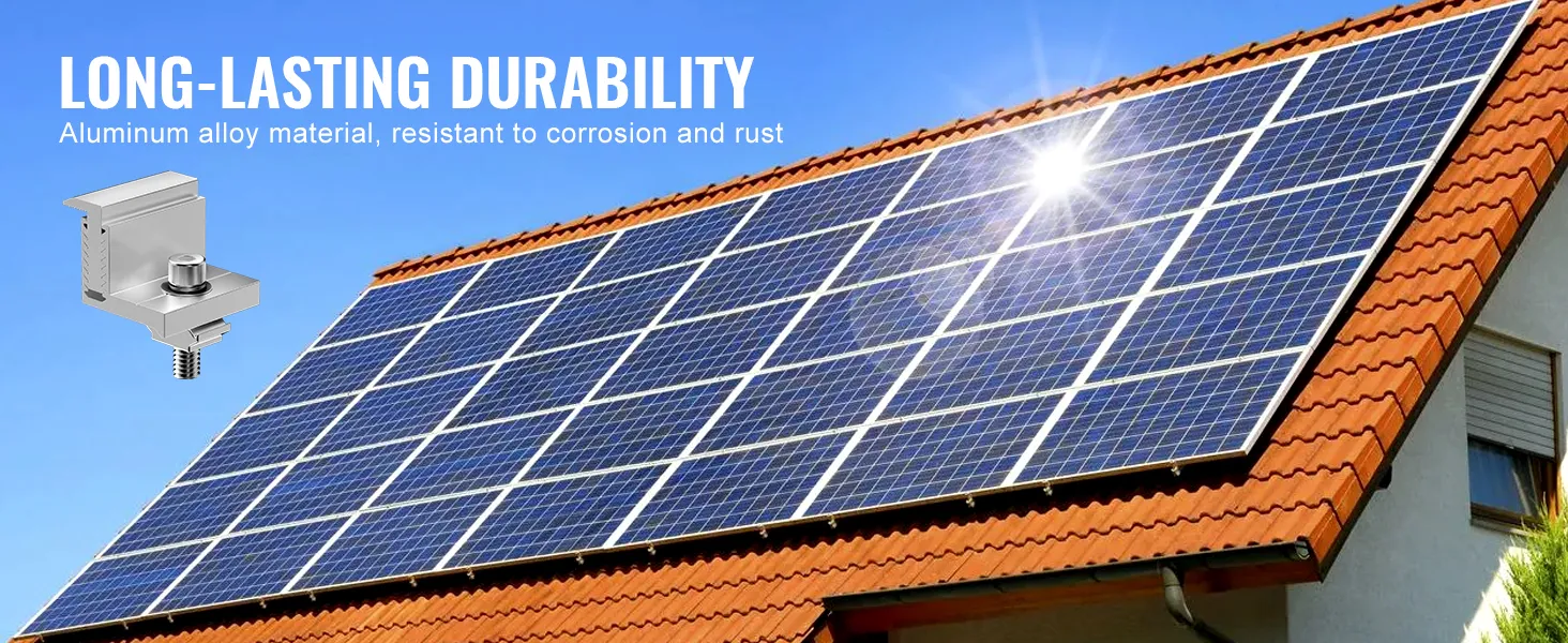 De verstelbare eindklem van 35-50 mm is geschikt voor zonnepanelen van verschillende diktes en de constructie van geanodiseerde aluminiumlegering zorgt voor langdurige stabiliteit, waardoor het de ideale keuze is voor de installatie van zonnepanelen.