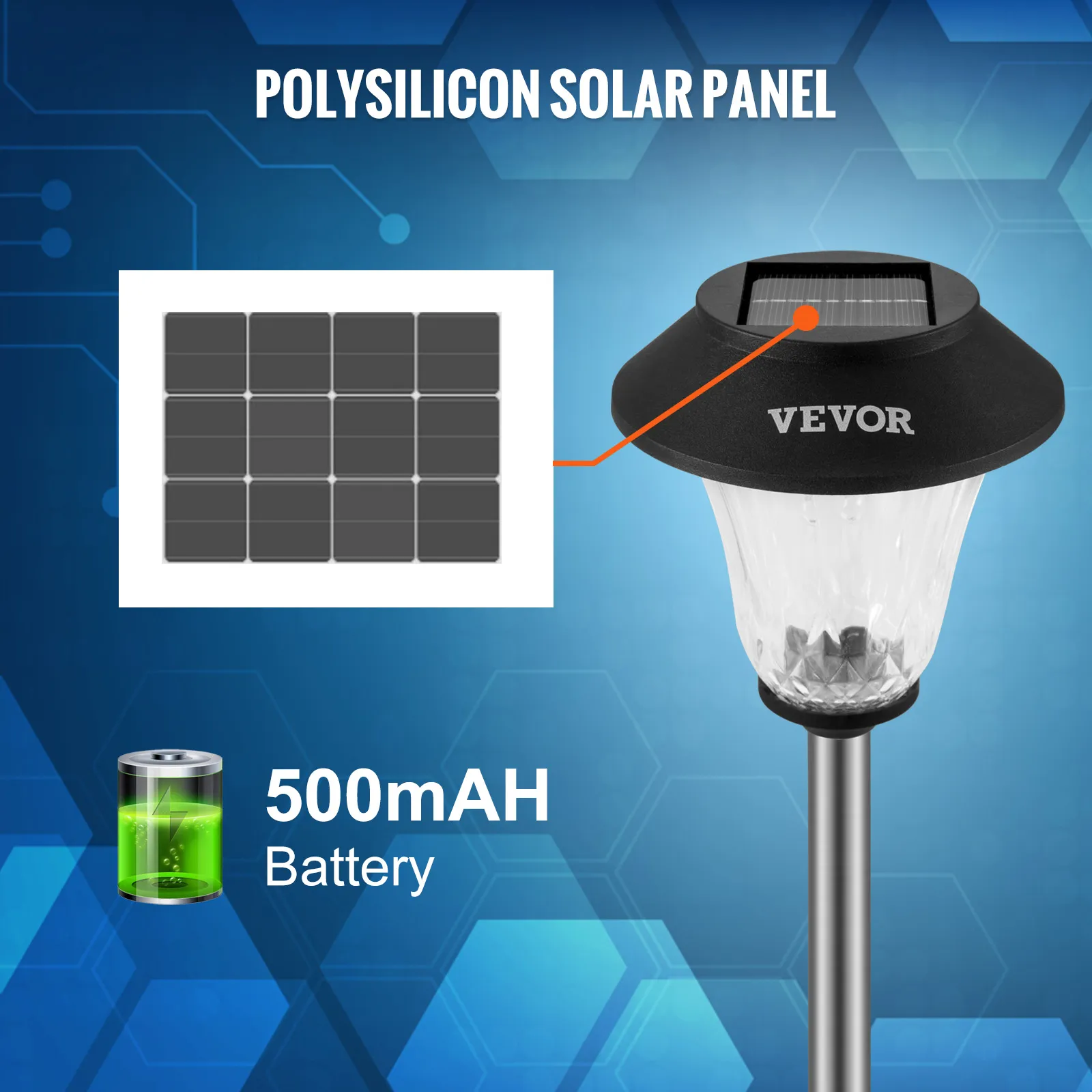 With a 500mAH rechargeable lithium battery and polysilicon solar panel, the outdoor solar light for walkway efficiently converts sunlight into solar energy during the day and lights up at night.