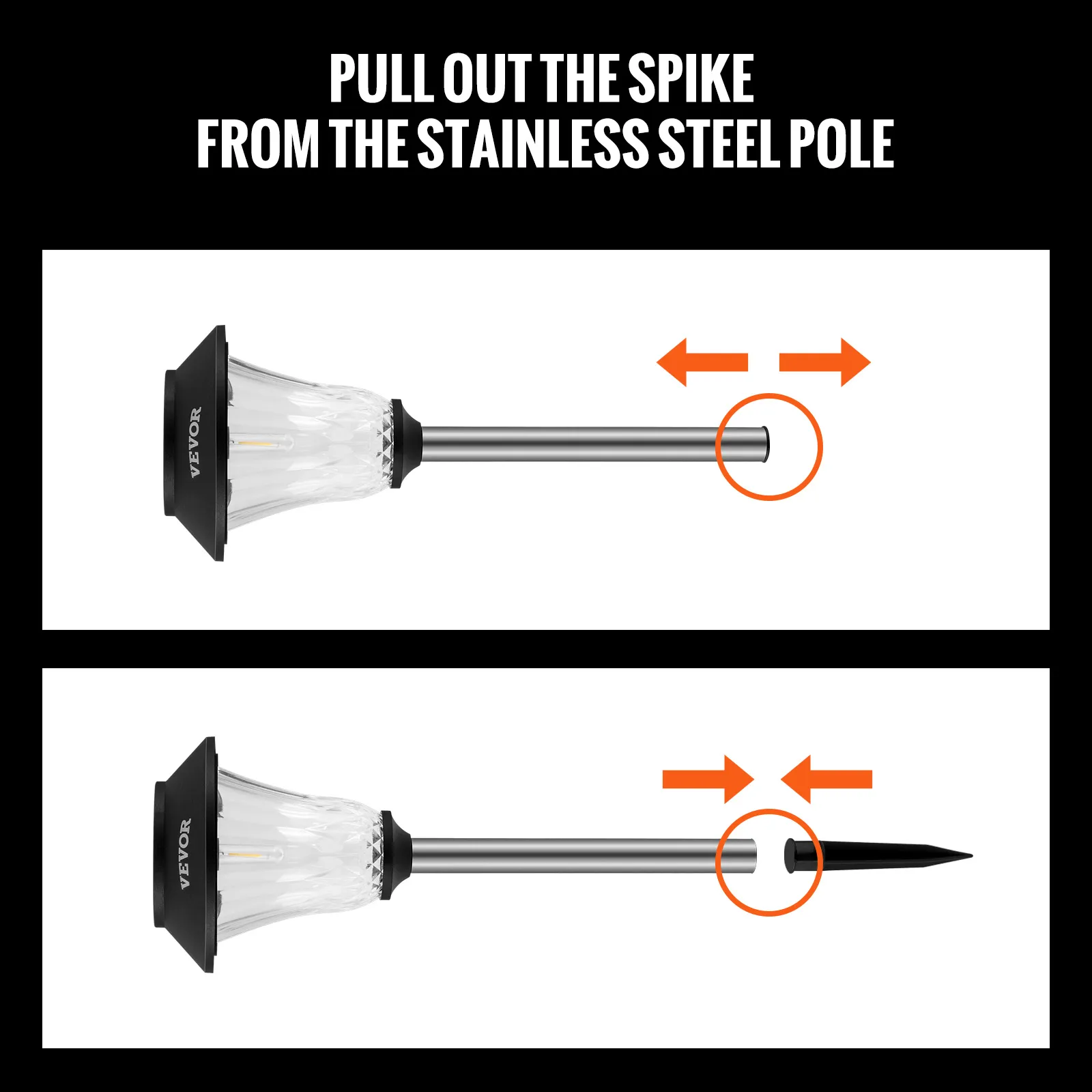 Install in No Time: A solar powered pathway light can be installed in 4 steps without tools or cabling. Just turn on the switch, connect the pole, spike, and lampshade, and insert it into the ground. NOTE: To ensure a better lighting effect, please install the lights in a sunny place.