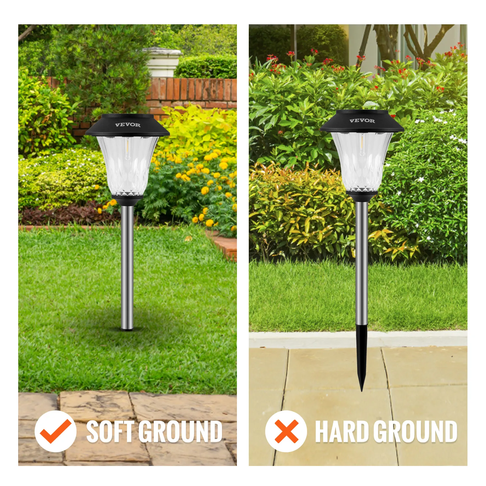 These solar driveway lights are suitable for soft ground, like gardens and yards. Please do not use them on the hard cement ground.