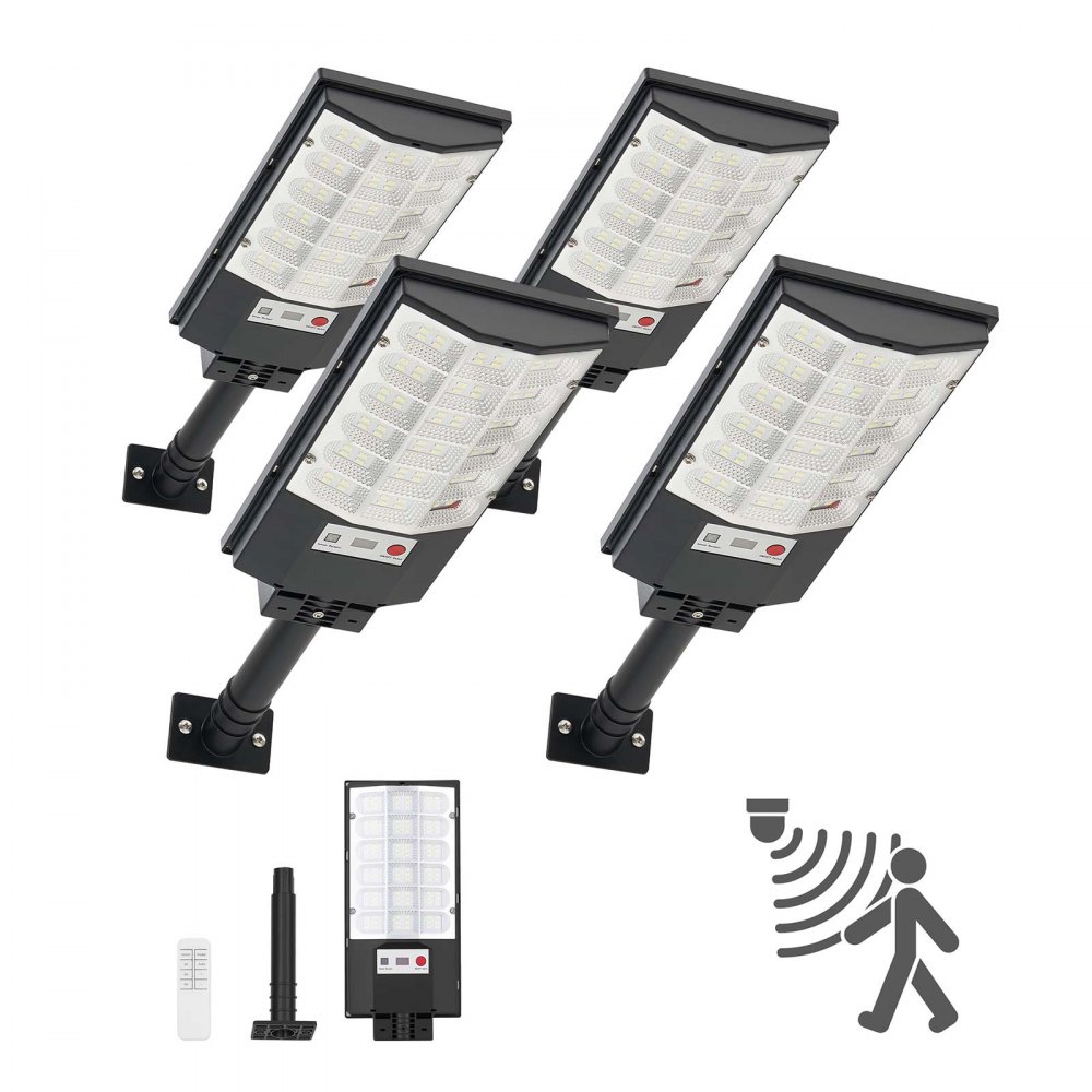 VEVOR Solar Straatverlichting 50000 LM, 500 W Straatlantaarn, Solar Verlichting met Schemersensor, LED Schijnwerper met Bewegingsmelder, IP65 Waterdichte Buitenverlichting voor Oprit & Tuin, 4-pack
