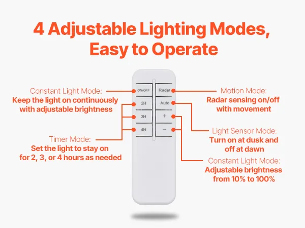 Onze op zonne-energie werkende LED-straatverlichting wordt bediend met een draadloze afstandsbediening, waarmee u naar behoefte verschillende bedrijfsmodi kunt instellen, wat de bediening efficiënter en gemakkelijker maakt.