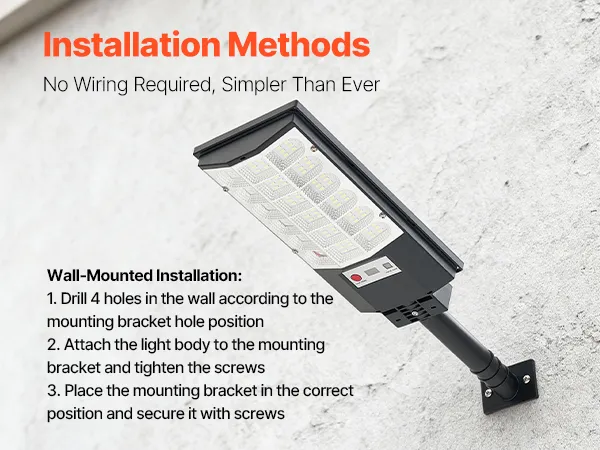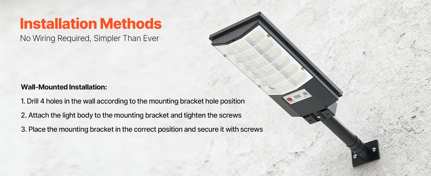 Deze straatverlichting op zonne-energie wordt geleverd inclusief alle benodigde bevestigingsmaterialen en is eenvoudig te installeren. Er is geen bedrading of kabelaanleg nodig. Bevestig hem gewoon met schroeven en klaar bent u.