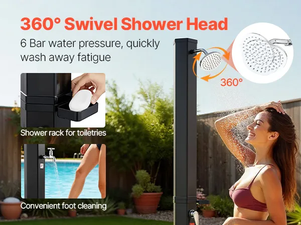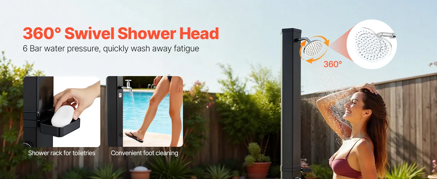 Ideaal voor zwembaden in de tuin, kampeertrips of een dagje strand. Zand, zout of zonnebrandcrème kunnen snel worden afgespoeld voordat je weer naar binnen gaat. Een praktische manier om jezelf op te frissen na buitenactiviteiten.
