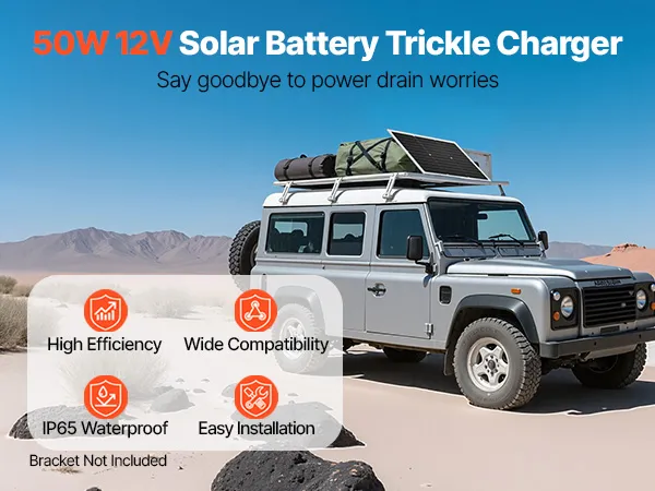 Duurzaamheid onder alle weersomstandigheden: Deze IP65 zonnepaneel-acculader werkt betrouwbaar van -40℃ tot 85℃ en is bestand tegen wind, regen, sneeuw en zon buitenshuis (de beugel is niet inbegrepen. Gebruikers moeten deze zelf stevig bevestigen en verstevigen om te voorkomen dat deze bij harde wind wordt weggeblazen).