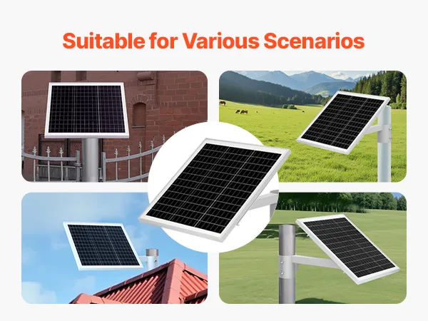 Deze acculaadset voor zonnepanelen wordt geleverd met een paalbevestiging die een hoekverstelling van 0-60° ondersteunt en geschikt is voor palen met een diameter van 40-68 mm. Eenvoudige installatie op poorten, hekken, huizen of gazons.
