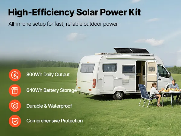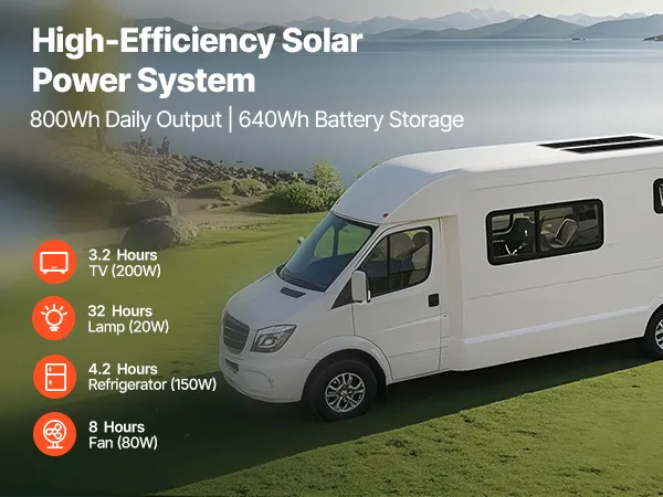 Zeer efficiënt zonnesysteem: Uitgerust met twee 100W zonnepanelen en een 12,8V 50Ah LiFePO₄ accu, levert deze complete zonne-energieset tot 800 Wh/dag aan stroom met een accucapaciteit van 640 Wh. Perfect voor campers, boten, huizen, campings en meer, biedt het een betrouwbare stroomvoorziening voor diverse huishoudelijke apparaten.