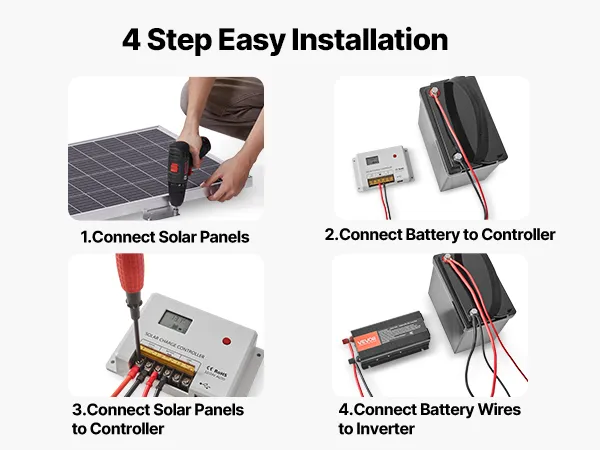 Bevat gedetailleerde bedradingsinstructies waarmee u de accu, zonnepanelen, controller en omvormer snel kunt aansluiten.