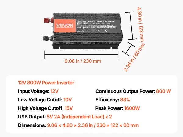 Deze complete zonne-energieset bevat twee monokristallijne zonnepanelen van 100 W, een 12,8 V 50 Ah LiFePO₄-accu, een 40 A PWM-zonnelaadregelaar en een 12 V 800 W omvormer. Met een output tot 800 Wh/dag en een accuopslag van 640 Wh levert hij betrouwbare stroom voor campers, boten, huizen, campings en meer.