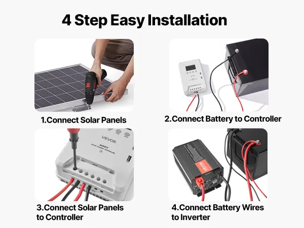 Bevat gedetailleerde bedradingsinstructies waarmee u de accu, zonnepanelen, controller en omvormer snel kunt aansluiten.