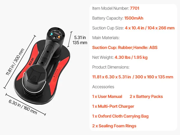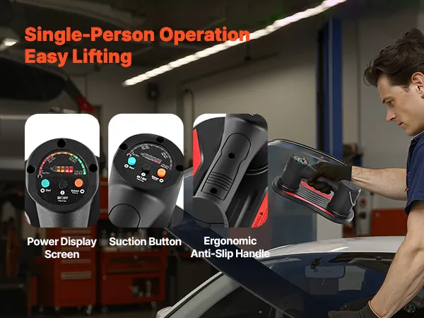 Pressure & Battery Display: The digital screen of the vacuum suction cup shows live vacuum and battery levels, so you track pressure and charging in real time and plan each lift with ease