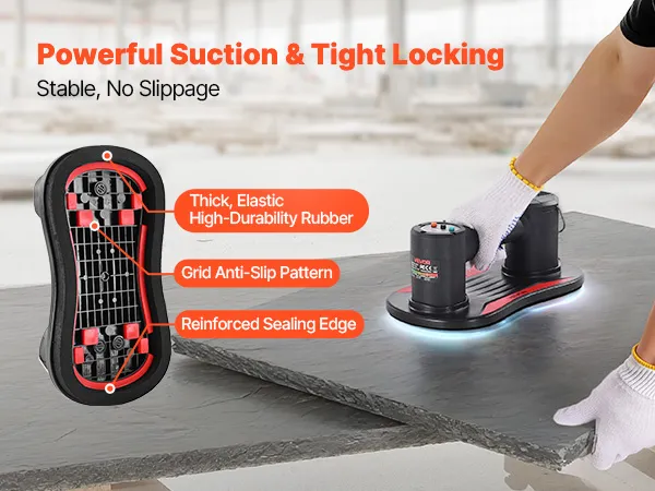 Pro-Grade Electric Cup: This smart suction cup lifter auto re-pumps to keep vacuum on flat, clean, smooth, non-porous surfaces. It helps you lift glass, tile, plastic, metal panels, and stone with confidence