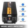 • 【AFSTANDSBEDIENING & LCD-SCHERM】- Met afstandsbediening om de omvormer eenvoudig aan/uit te zetten. Met een LED-display kunt u eenvoudig de ingangsspanning, het uitgangsvermogen en de beveiligingsmodus observeren.