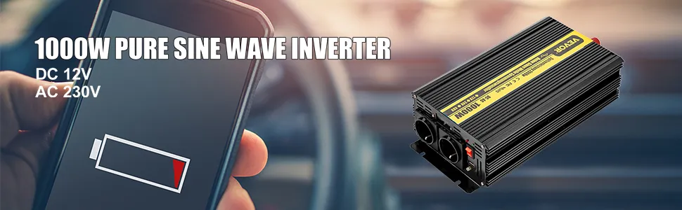 Zuivere sinusomvormers zijn ontworpen voor apparatuur die een precieze bescherming vereist. Hij kan DC 12 V omzetten in AC 230 V met een rendement tot 94%. De omvormer heeft uitgebreide veiligheidsbescherming zoals overbelastingsbeveiliging, laagspanningsbeveiliging en overspanningsbeveiliging. Zuivere sinusgolven worden veel gebruikt in inductieve belastingen, zoals notebooks, lineaire adapters, schakelende voedingen, transformatoren, motoren, diepvriezers, ventilatoren, enz.