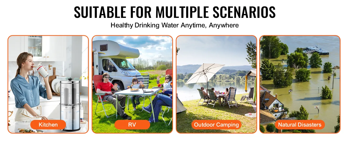Our water filter requires no electricity and is suitable for various environments, whether indoors or outdoors.
