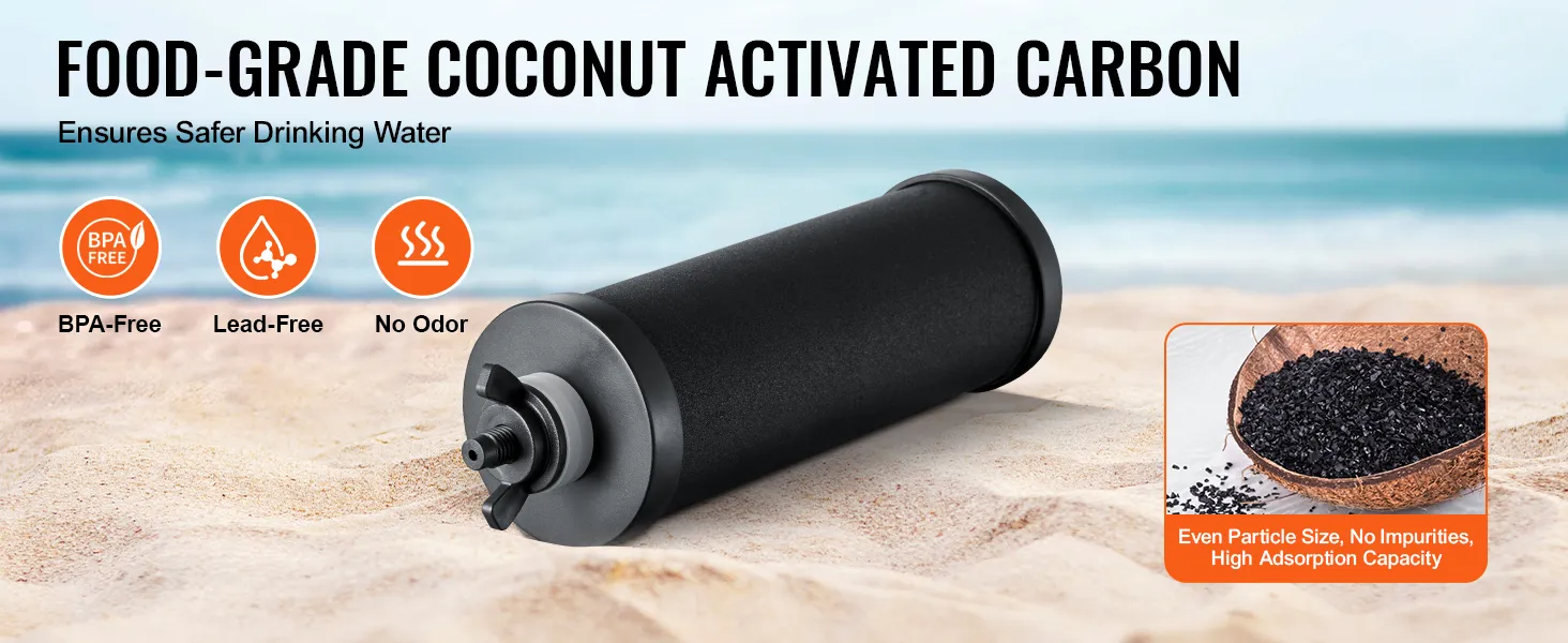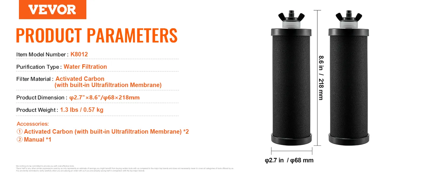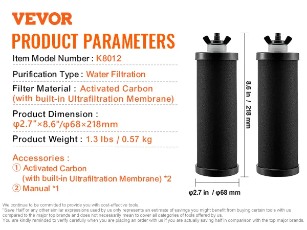 VEVOR Water Filters Replacement, Purification Elements, Activated Carbon Replacement Filters, Easy to Replace Water Filter, Gravity Water Filter System, Compatible with Most Brands, Pack of 2, Black