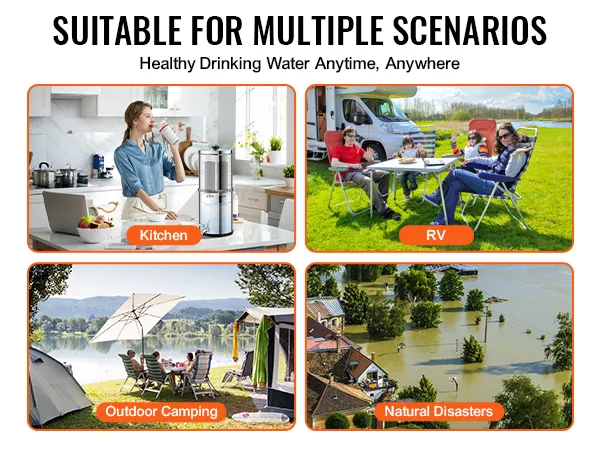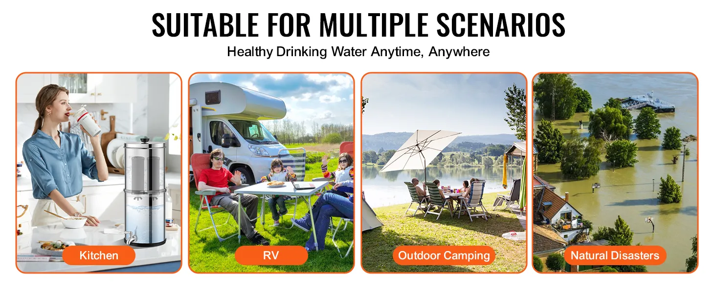 Our water filter requires no electricity and is suitable for various environments, whether indoors or outdoors.