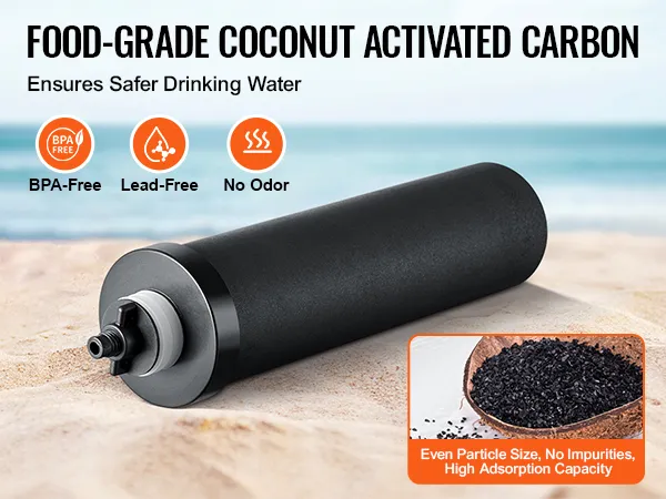 Premium actieve kool gemaakt van kokosnoot: Het waterfilter maakt gebruik van voedselveilige actieve kool gemaakt van kokosnoot. De koolstofkorrels zijn uniform, waardoor geuren effectief worden verminderd en de smaak van het doorstromende water wordt verbeterd.