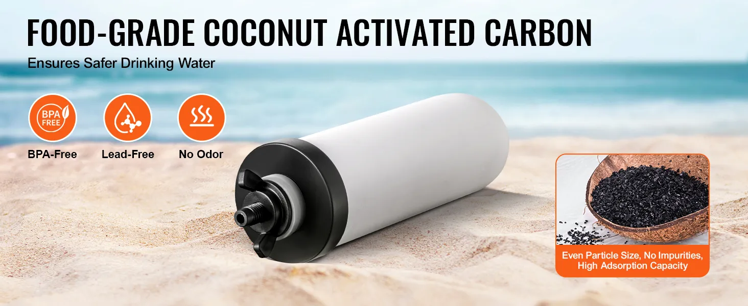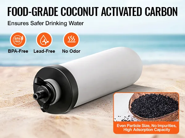 Premium actieve kool gemaakt van kokosnoot: Het waterfilter maakt gebruik van voedselveilige actieve kool gemaakt van kokosnoot. De koolstofkorrels zijn uniform, waardoor geuren effectief worden verminderd en de smaak van het doorstromende water wordt verbeterd.