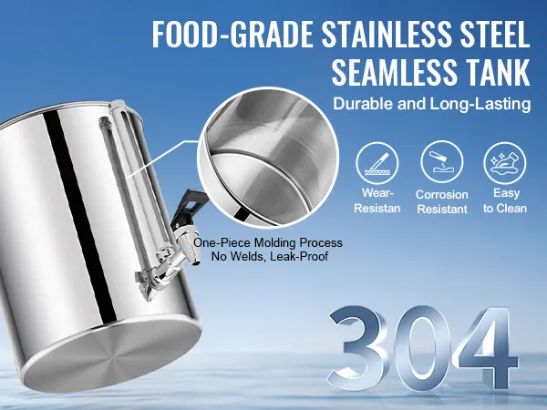 Durability and Strength: Constructed with SUS304 food-grade stainless steel, the seamless barrel is sturdy and durable. The lack of welds or leaks of the water filtration system significantly reduces the risk of water leakage.