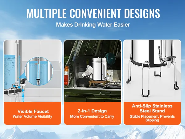 Easy Installation and Refilling: The water filtration system comes with a complete set of accessories for easy installation without requiring electricity. Additionally features an upgraded visual faucet, clearly showing the water level. It's suitable for various scenarios, such as camping, fishing, and off-grid living.