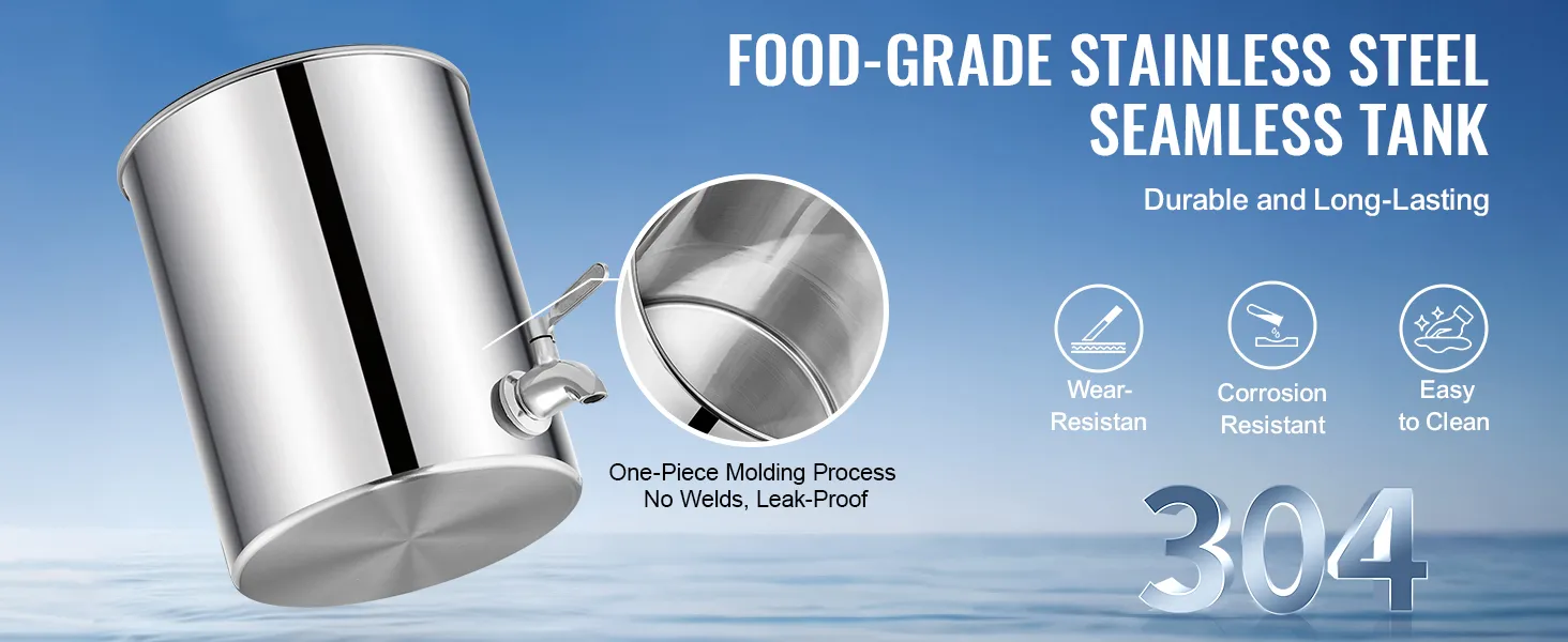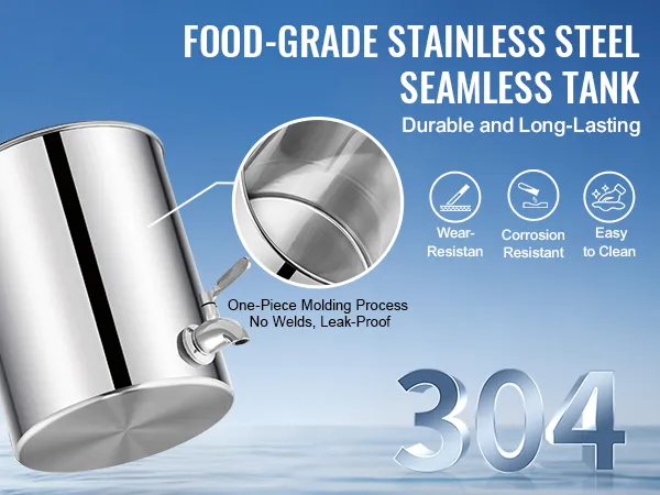 Durability and Strength: Constructed with SUS304 food-grade stainless steel, the seamless barrel is sturdy and durable. The lack of welds or leaks of the water filtration system significantly reduces the risk of water leakage.