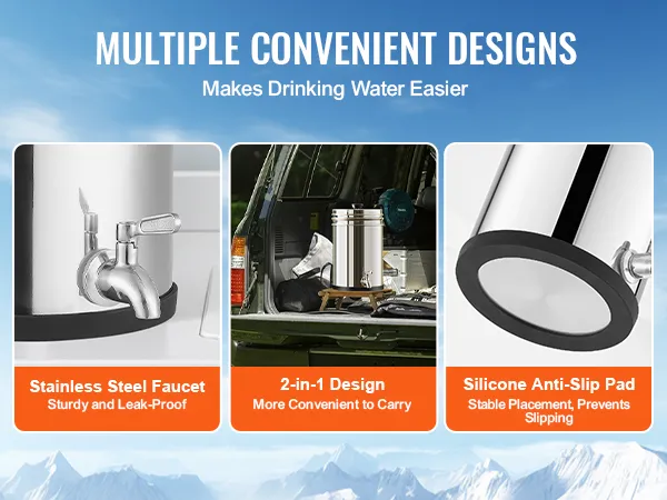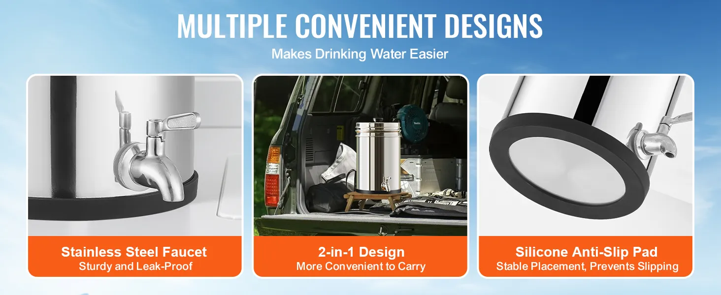 Made from premium SUS304 food-grade stainless steel, our gravity water filter is thick, sturdy, and durable. It utilizes a seamless stretching process, with no welds or leaks, greatly reducing the risk of leakage and ensuring long-term stability and safety.