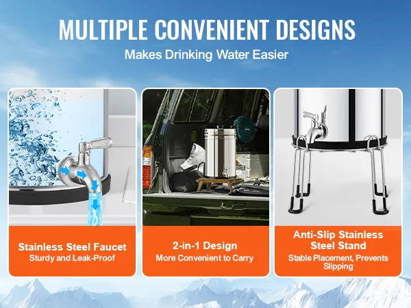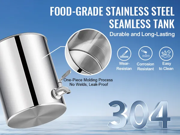 Het is gemaakt van SUS304 roestvrij staal van voedingskwaliteit en is dik, stevig en duurzaam. Het wordt vervaardigd met behulp van een naadloos rekproces zonder lasnaden of lekken, waardoor het risico op lekken aanzienlijk wordt verminderd en stabiliteit en veiligheid op de lange termijn worden gegarandeerd.