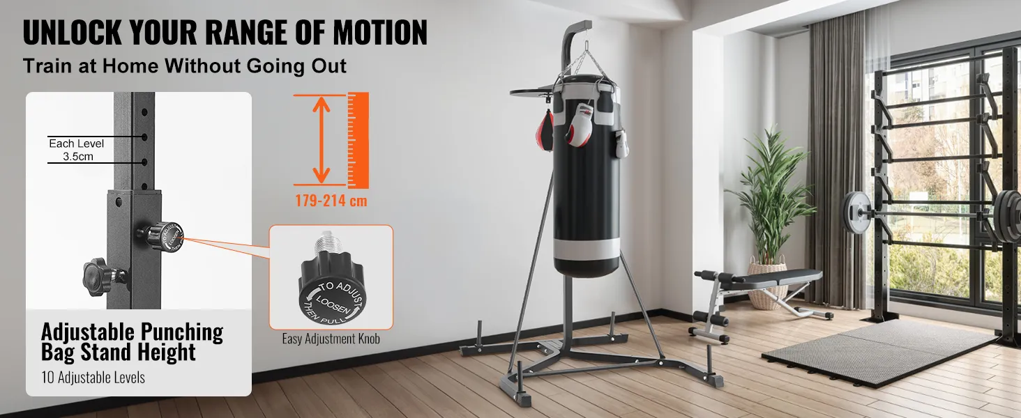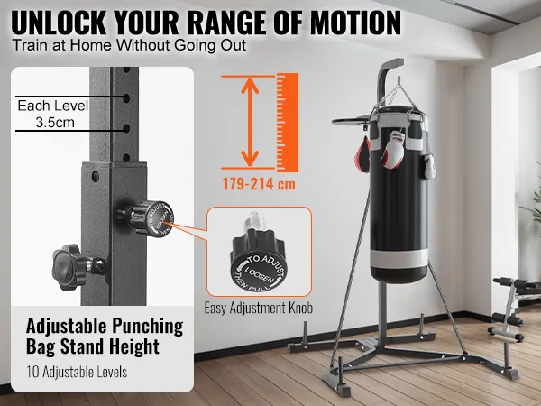 • Adjustable Height: The height of the punching bag stand can be adjusted according to your training needs. The height can be adjusted from 159cm to 173cm, catering not only to adults but also making it the perfect fitness equipment for teenagers in your household.