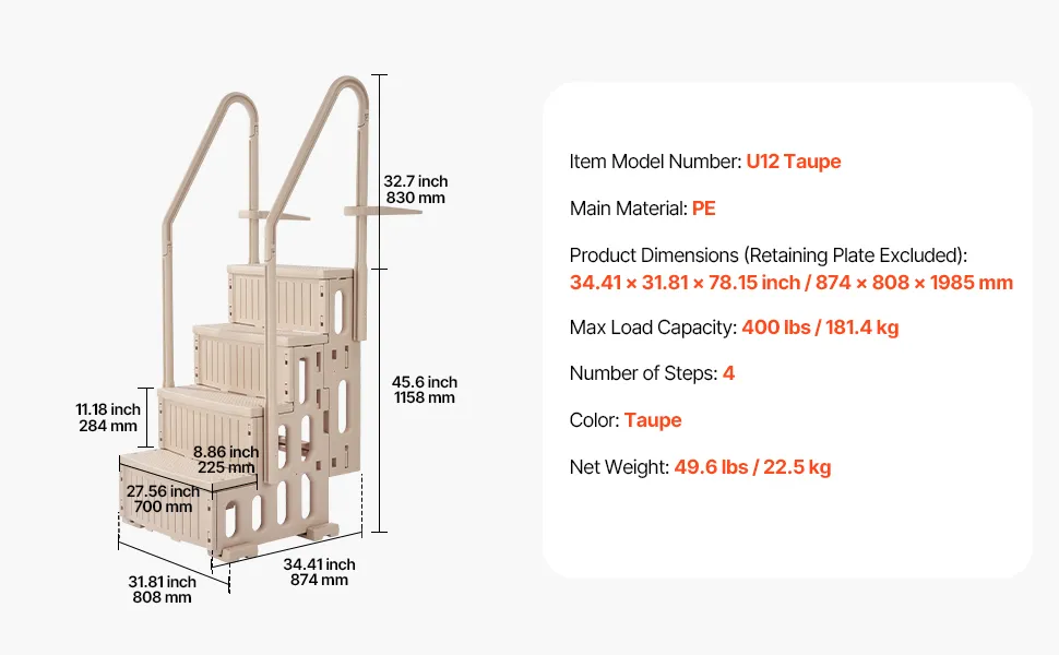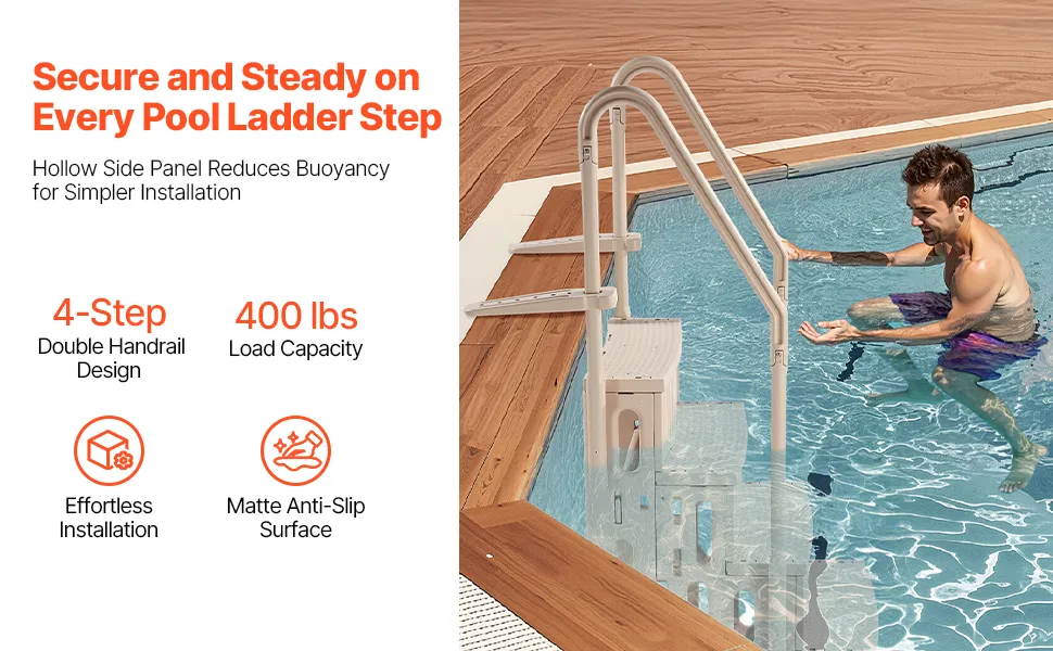 Betrouwbaar draagvermogen van 181,4 kg: Met een draagvermogen van maximaal 181,4 kg is deze zwembadladder de eerste keuze voor kinderen en volwassenen. De verdikte voetplanken zijn ontworpen met antislip-oppervlakken met een structuur om veiligheid bij elke stap te garanderen