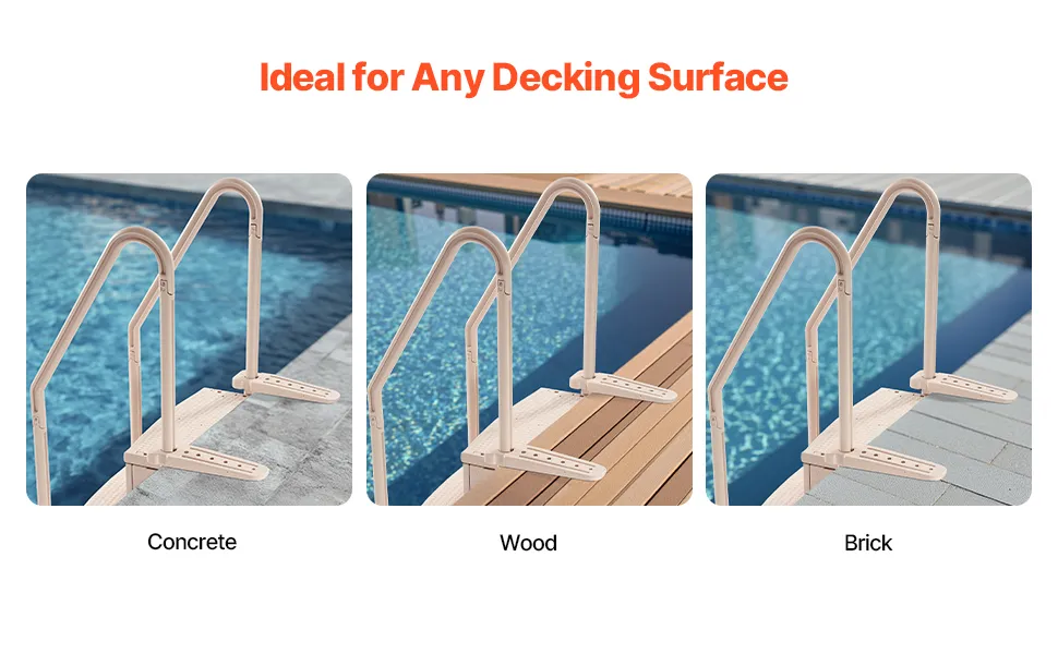 Deze zwembadladder kan eenvoudig worden geïnstalleerd in uw buitenzwembad, binnenzwembad of waterpark. Of u nu een betonnen, houten of bakstenen vloer hebt, deze ladder is veilig, stevig en moeiteloos te installeren!