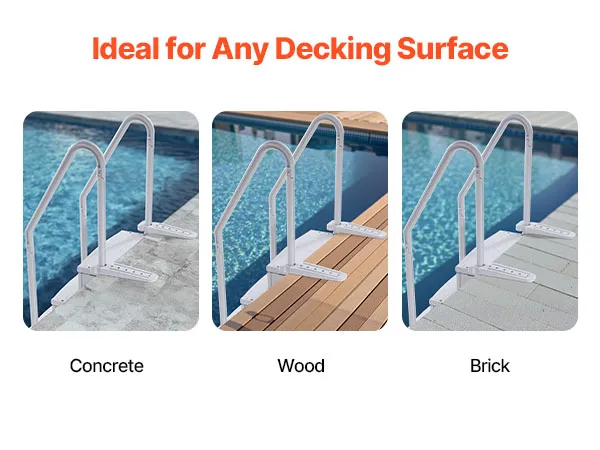 Deze zwembadtrappen kunnen eenvoudig worden geïnstalleerd in uw buitenzwembad, binnenzwembad, buitenzwembad of waterpark. Of je nu betonnen, houten of bakstenen vloeren hebt, deze ladder kan veilig, stevig en moeiteloos worden geïnstalleerd!