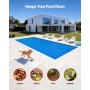 Eenvoudig zwembadonderhoud: Met de warmtevasthoudende solar afdekking van VEVOR blijft uw zwembad schoon, omdat vuil, bladeren en kleine dieren er niet doorheen kunnen dringen. De afdekking is gemakkelijk te gebruiken en kan handig worden opgerold en opgeborgen wanneer deze niet in gebruik is. Dit bespaart ruimte en houdt het zwembadoppervlak schoon.