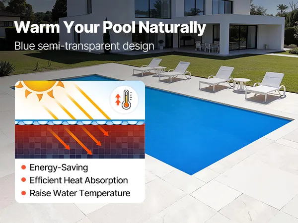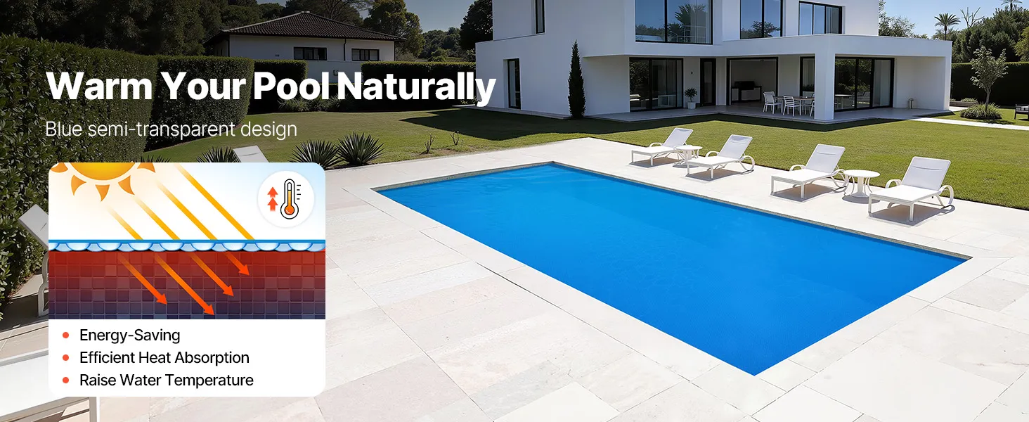 Solar Heat Lock: Deze solar zwembadafdekking absorbeert natuurlijk zonlicht door middel van dicht opeengepakte microbubbels, waardoor een effectieve warmteopslaglaag ontstaat. Het verwarmt het zwembad overdag en houdt het 's nachts warm, waardoor er minder energie nodig is om de watertemperatuur op peil te houden.