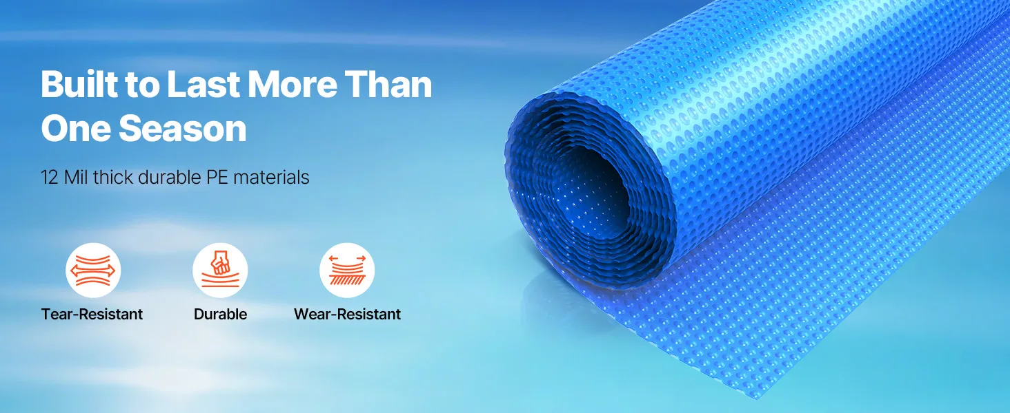 Met een dikte van 0,3 mm (12 mil) biedt deze solar zwembadafdekking ongeëvenaarde duurzaamheid en uitstekende warmte-isolatie. De robuuste constructie is bestand tegen slijtage, waardoor hij ideaal is voor gebruik buitenshuis gedurende het hele jaar.