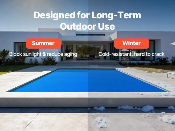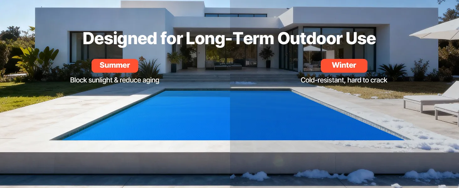 Duurzaam buitengebruik: Deze thermische zwembadafdekking, gemaakt van hoogwaardig PE-materiaal, is rek- en scheurbestendig, waardoor hij ideaal is voor langdurig gebruik buitenshuis. Hij is bestand tegen langdurige blootstelling aan de zon zonder te barsten of te verouderen. Let op: Om een lange levensduur te garanderen, dient u gebruik in sterk zure of chloorhoudende omgevingen te vermijden.