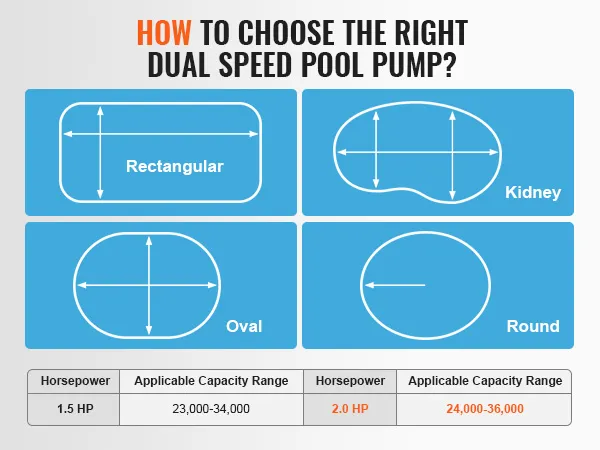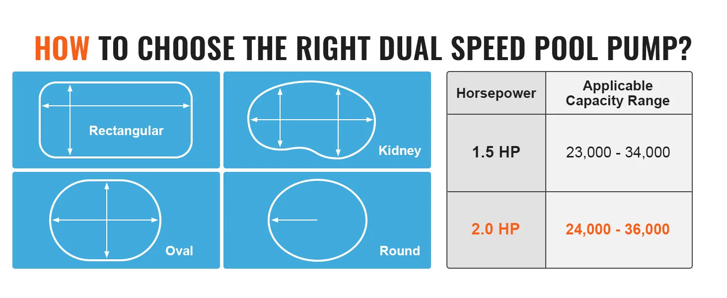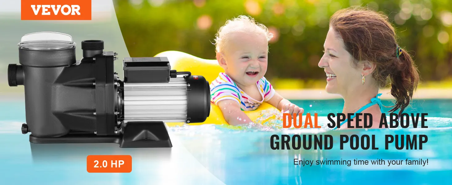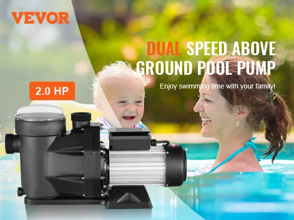 Onze zwembadpomp met twee snelheden is verkrijgbaar in twee vermogensopties: 1,5 pk en 2,0 pk. Of u nu een klein opblaasbaar zwembad heeft of een groot bovengronds zwembad, u kunt het ideale model kiezen voor uw specifieke behoeften.
