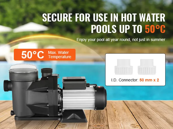 Onze bovengrondse zwembadpomp is ontworpen voor watertemperaturen van 0 °C tot 50 °C. Of u nu een bovengronds zwembad, bubbelbad, spa (inclusief zoutwaterzwembaden) of irrigatiesysteem heeft, deze pomp is de juiste keuze voor u.