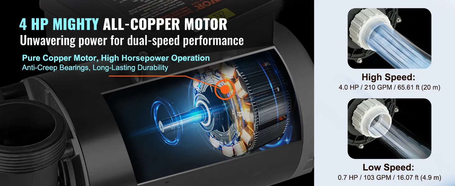 VEVOR 56 SPA-pomp met framemotor en dubbele snelheid