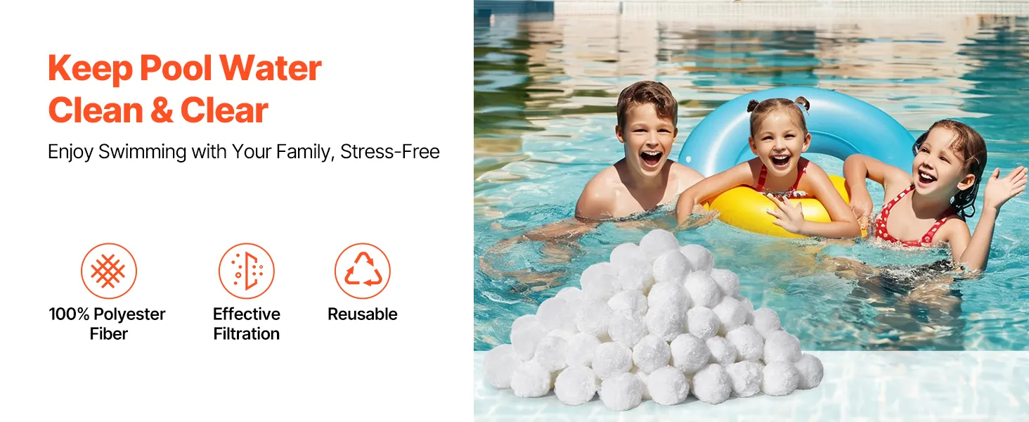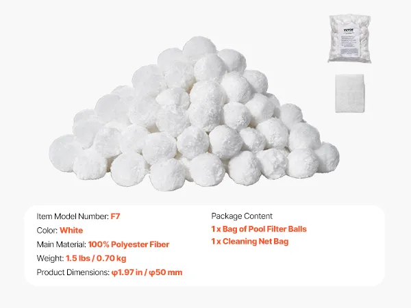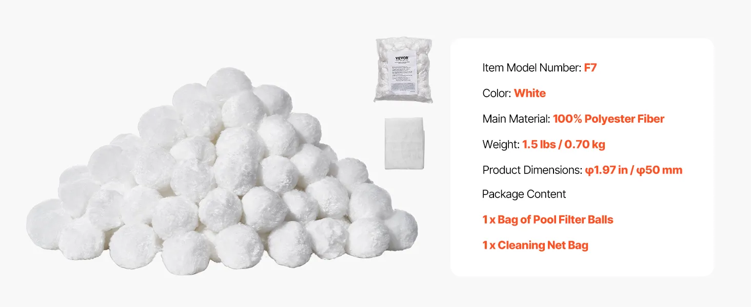 Elevate your filtration game with our pool filter balls, crafted from 100% premium polyester fiber. Our balls bring superior filtration performance, are compatible with various filter systems like sand filters, cartridge filters, and DE filters. Enjoy swimming in crystal clear water in no time!