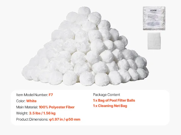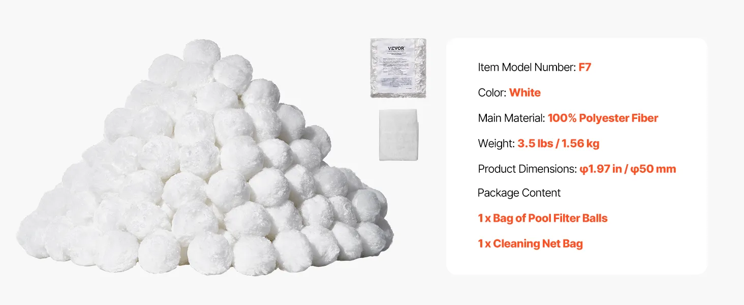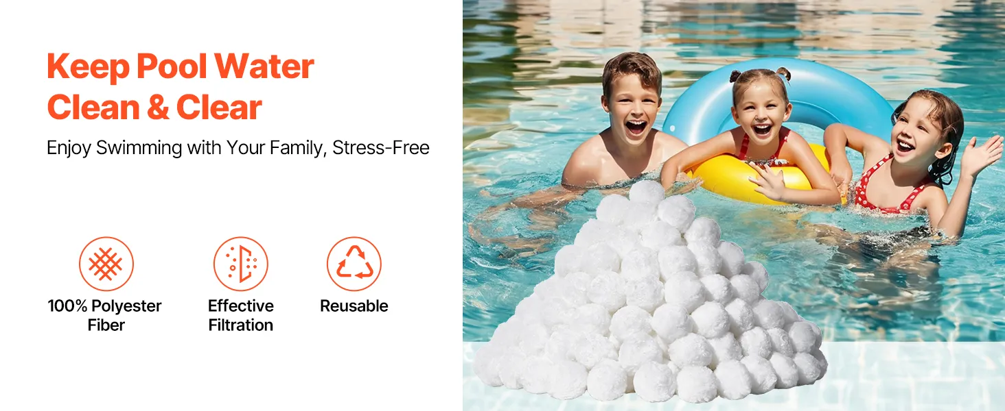 Elevate your filtration game with our pool filter balls, crafted from 100% premium polyester fiber. Our balls bring superior filtration performance, are compatible with various filter systems like sand filters, cartridge filters, and DE filters. Enjoy swimming in crystal clear water in no time!