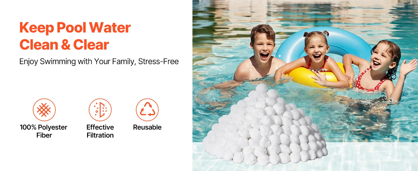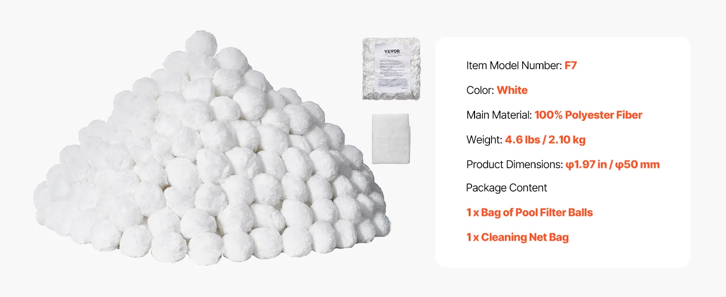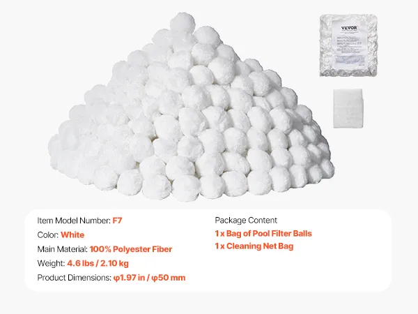 Elevate your filtration game with our pool filter balls, crafted from 100% premium polyester fiber. Our balls bring superior filtration performance, are compatible with various filter systems like sand filters, cartridge filters, and DE filters. Enjoy swimming in crystal clear water in no time!