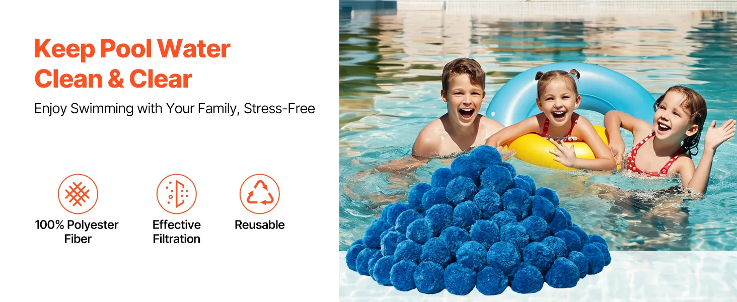 With superior filtration accuracy, strong adsorption, and fast filtration speed, our pool filter balls provide impressive performance. Just 700 g of filter balls can replace 25 kg of traditional sand, making it an efficient and space-saving replacement.