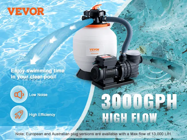 Efficiënte prestaties: Bent u klaar om deze zomer van uw zwembad te genieten? Onze zandfilterpomp van 450 W biedt een groot waterdebiet tot 13.000 l/u en zorgt voor een efficiënte watercirculatiesnelheid. Met de mogelijkheid om het hele zwembad in korte tijd schoon te maken, kunt u genieten van een schone en veilige zwemervaring.